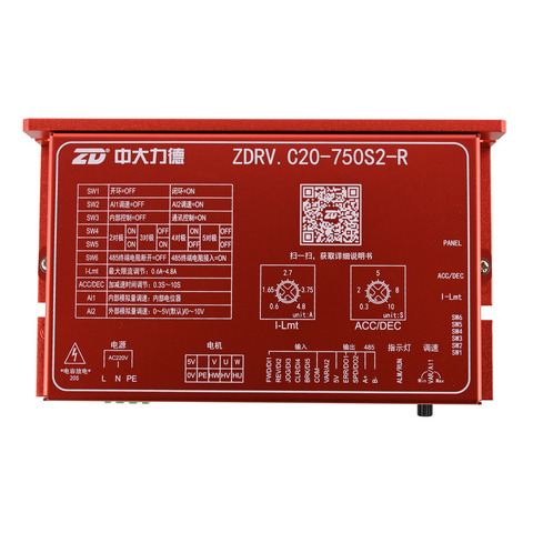 Controlador de controlador de motor sin escobillas ZD AC 220V 120-200W modelo ZDRV.C20-200S2-R con RS485
